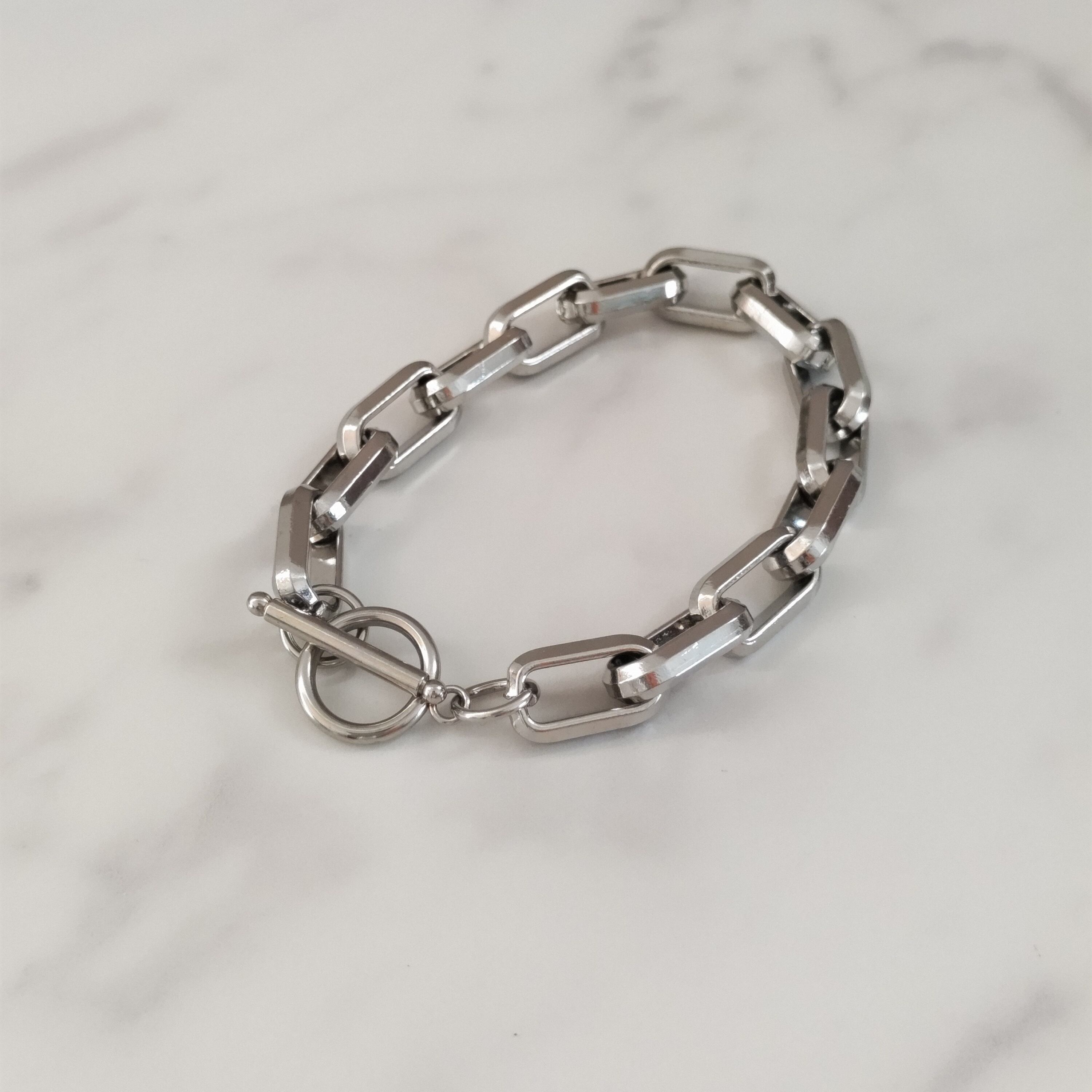 マンテル形式のオーバルチェーンを使用したブレスレット。